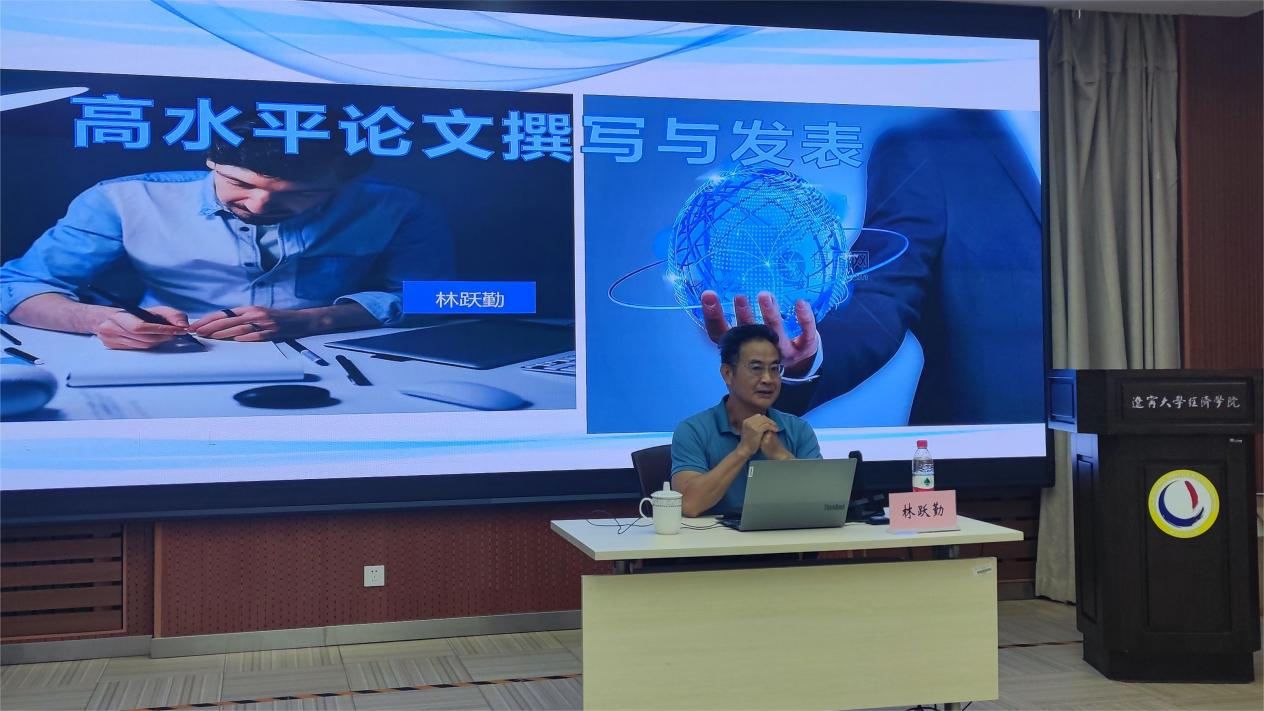 2023年6月28日下午,中国社会科学院研究员、中国社会科学院大学政府管理学院教授林跃勤应邀在蒲河校区则行楼133会议室作了题为“高水平论文撰写与发表”的学术报告,讲座由ok138cn太阳集团副院长和军教授主持,ok138cn太阳集团50余名师生代表参加了报告会。