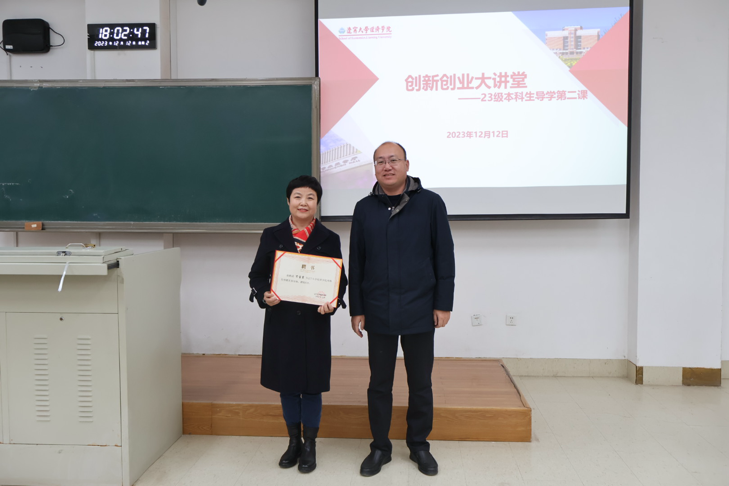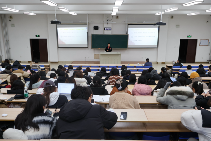 2023年12月12日晚,ok138cn太阳集团创新创业大讲堂暨2023级本科生导学第二课在蒲河校区方圆楼召开。ok138cn太阳集团邀请招商银行股份有限公司沈阳分行原零售金融事业部总经理、支行行长宋宝霞女士做了题为《银行业的现状、发展趋势与人才需求定位》的报告。学院党委书记王冰、2023级全体本科生参加会议。报告会由学院党委副书记兼副院长张伟主持。