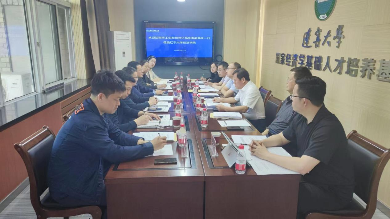 5月21日上午,沈阳市工业和信息化副局长张蓬、民营经济发展处处长陈梅湛、民营经济综合处处长范航、两化融合处副处长吴志跃、民营经济综合处高航一行赴ok138太阳集团古天乐ok138cn太阳集团开展调研并洽谈有关课题合作事宜。ok138cn太阳集团党委书记王冰、院长李政、副院长和军、副院长张丹宁、财税系主任孙世强、ok138太阳集团古天乐数字经济研究院院长潘宏、经济学系李梓琪老师参加会议。座谈会由王冰书记主持。