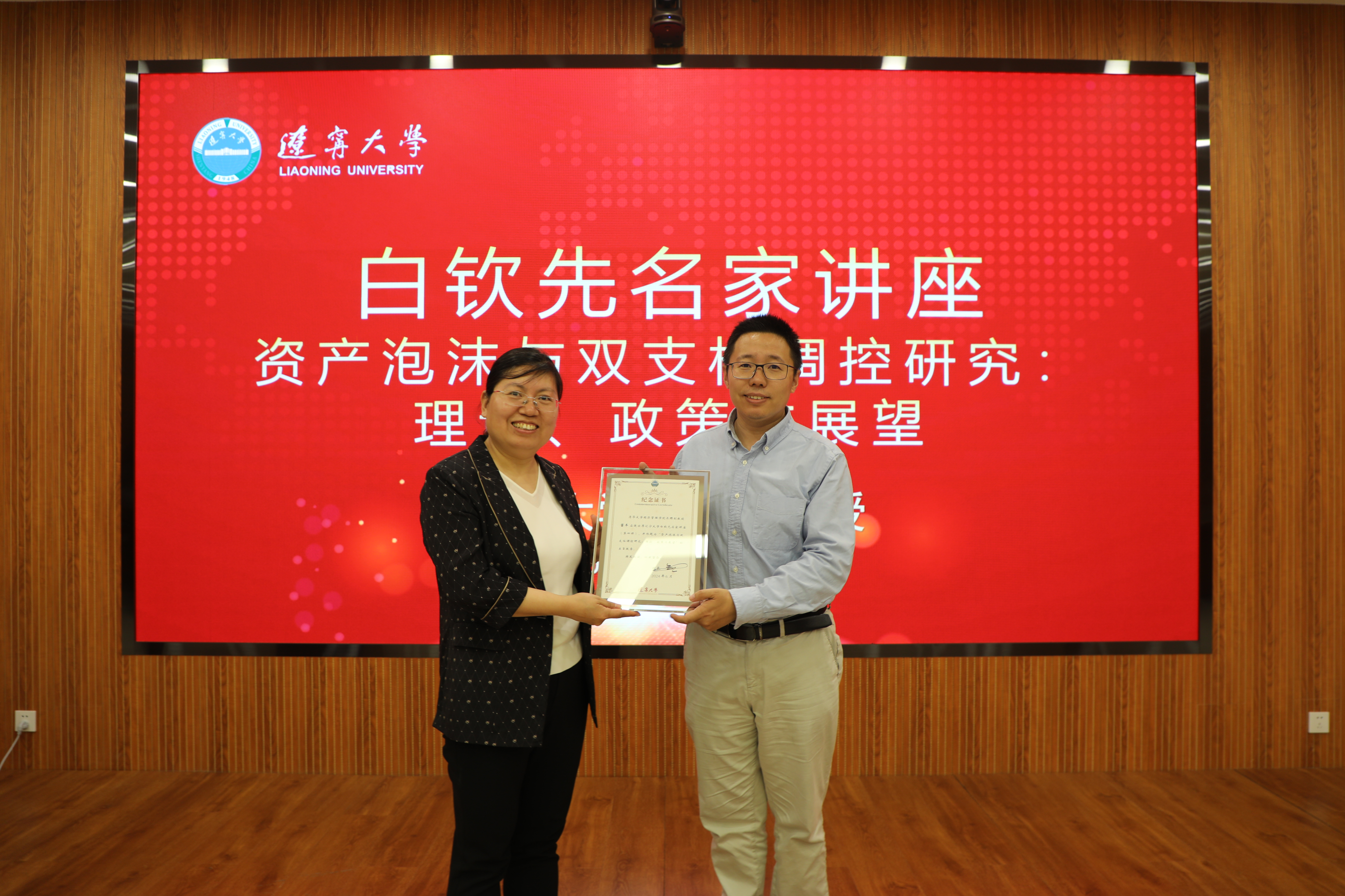 讲座结束后,ok138太阳集团古天乐社会科学研究院院长李艳枝教授为董丰教授颁发了“白钦先名家讲座”纪念证书,ok138太阳集团古天乐经济学部副主任王伟光教授为董丰教授赠送了《ok138太阳集团古天乐智库报告》,ok138cn太阳集团教师代表荣莹为董丰教授献花致敬。