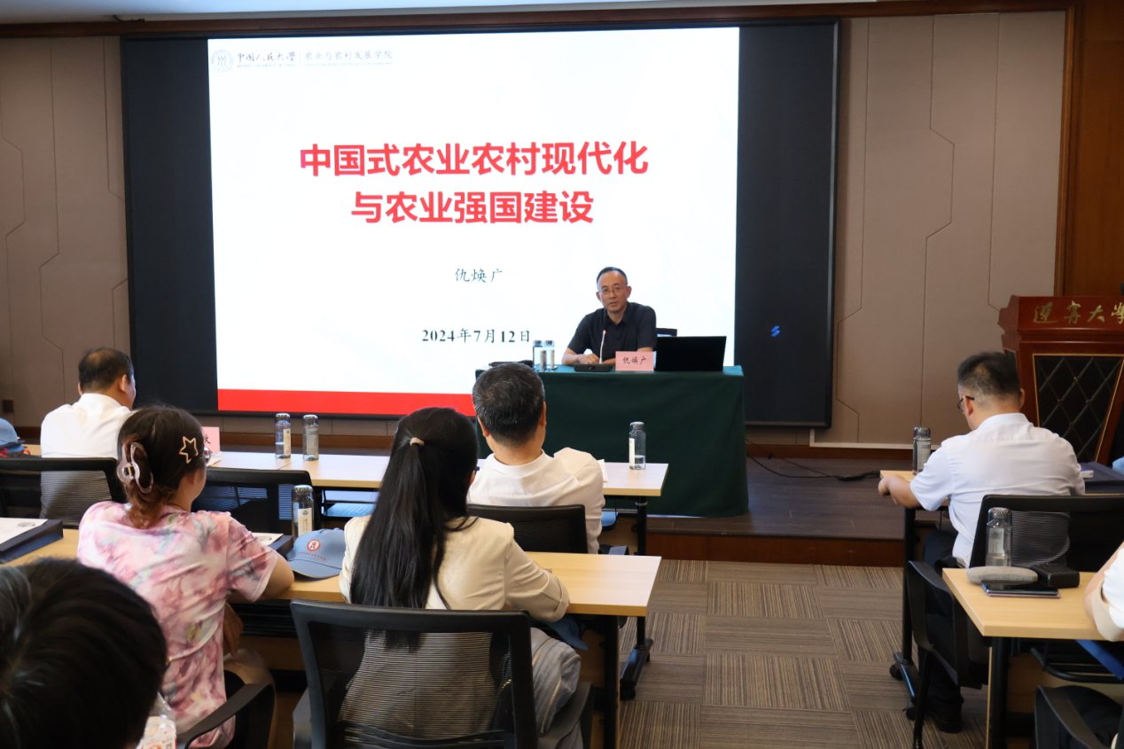 开班仪式结束后,ok138太阳集团古天乐党委常委、副校长仇焕广教授以《中国式农业农村现代化与农业强国建设》为题主讲暑期学校名家系列讲座首场学术报告。报告会由ok138cn太阳集团院长李政教授主持。