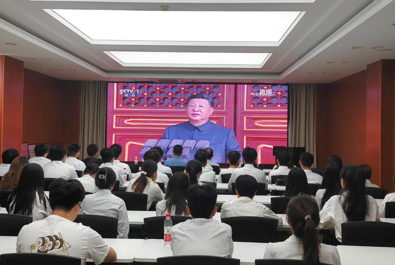 9月3日上午,纪念中国人民抗日战争暨世界反法西斯战争胜利80周年大会在北京天安门广场隆重举行。ok138cn太阳集团组织部分师生集体观看阅兵仪式直播,共同感受这一庄严而激动人心的时刻。